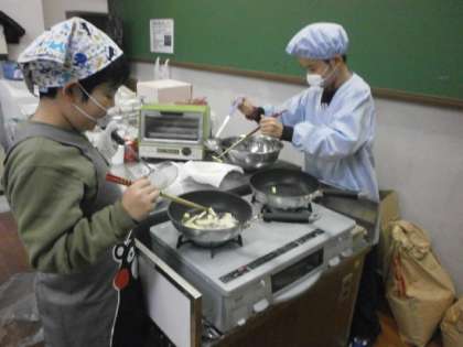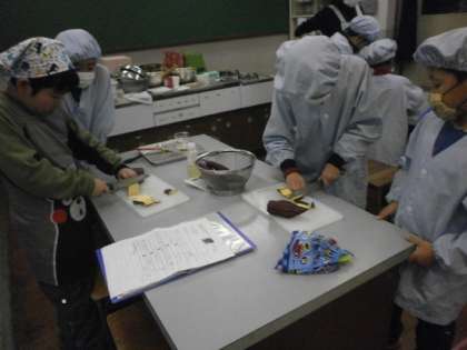 今日の5・6時間目に,これまで作り方や味付けを調べたり,役割を話し合ったりしてきたサツマイモ料理を作りました。材料や道具なども自分たちで調べてきたので,調理もスムーズに進み,ゆっくりと食べる時間が持てました。職員室にもおすそわけを行い,みんなでおいしく食べました。