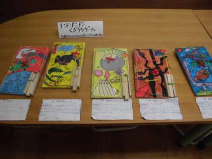 釘打ちゲームが完成しました。ビー玉を打って転がって入ったところによってポイントになります。