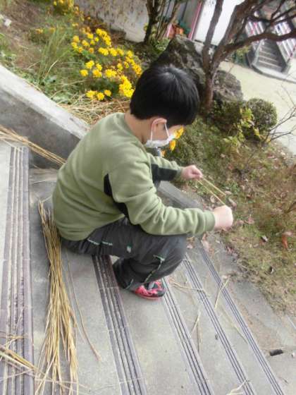 藁の準備が必要です。休み時間に準備をしていました。自分の分は自分でします。