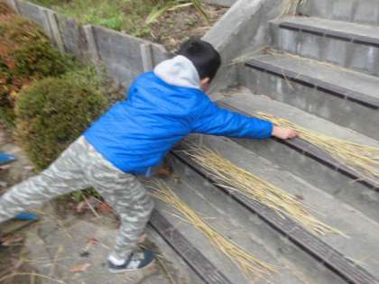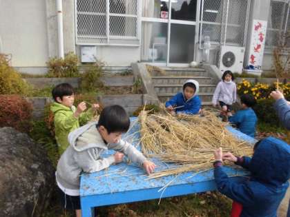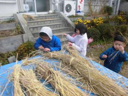 藁の準備をしています。準備から後始末までが活動で、学習です。