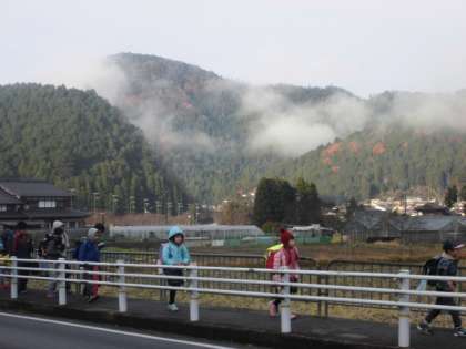 休み明けの月曜日です。雲が少し山の間に止まっている感じです。元気に登校しています。