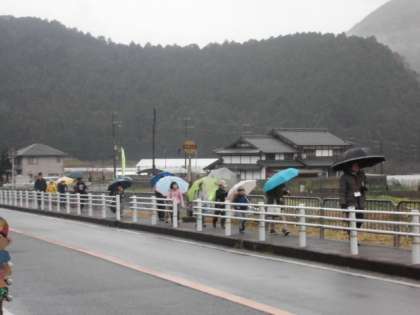 雨の中の傘さし登校です。本日13日のマラソン大会は、15日(木)に延期となりました。