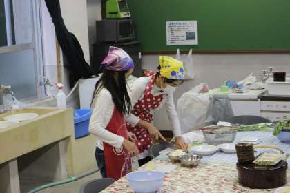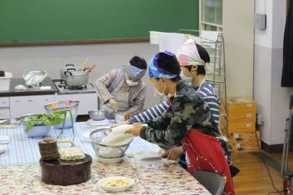 米作りの感謝の会を開きます。お世話になった地域の方々におにぎりや大根のみそ汁をふるまおうと頑張って準備をしています。