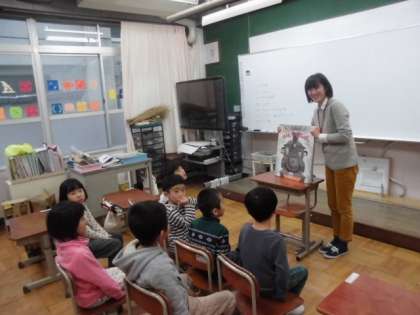 学校司書による読み聞かせです。どの児童も自分の感想を話します。どの児童も友達の感想をしっかり聞きます。
