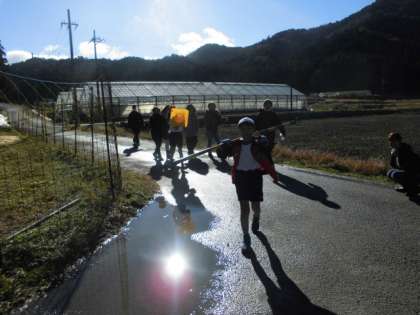 交通整理用のコーンやバーを撤収して学校へ戻ります。まだ、体力もあり、マラソンで頑張った話もできる児童もいました。