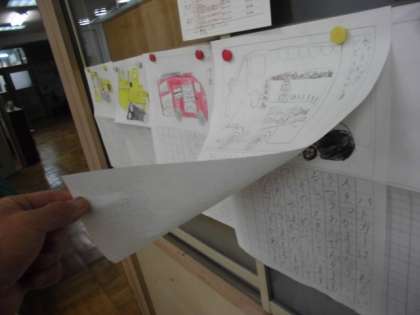 じどう車くらべで読み取ったことをもとに、自動車を選んで、説明文を書きました。自動車の仕事とその仕事をする為の仕組みとを分けて書いています。段落で、内容が変わることや一字下げのすること、原稿用紙の使い方など身に付けていきます。