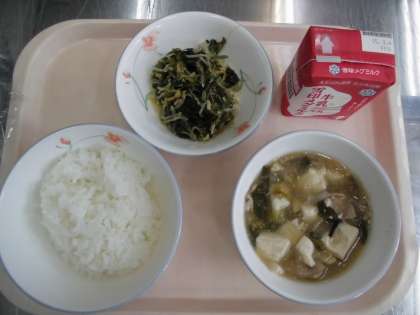 ごはん 牛乳 豚肉ととうふのくず煮 ほうれん草ともやしのごま煮