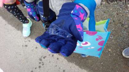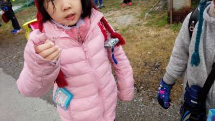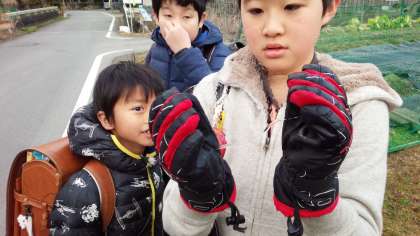 今週は寒い朝が続いていて、今朝はついに氷点下になりました。冷たい朝の子どもたちのお気に入りは、集団登校の道の横にある大きな鉄の水槽に氷が張っているかを確かめることです。今までは覗き込んでも氷がなかったのですが、ついに今朝は薄い氷をゲットすることができました。これから静原の厳しい冬が続くようです。