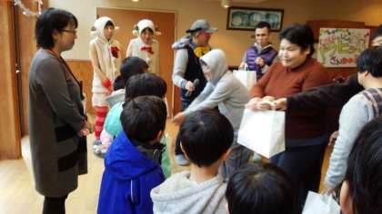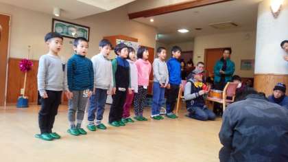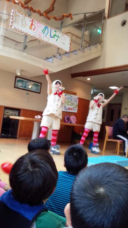 お餅つきの後は、部屋に入ってドラヒップさんというグループの歌とダンスを鑑賞して楽しみました。ゆかいなサウンドで、踊り出す方もおられました。静原校の子どもたちからも歌と演奏をプレゼントしました。交流ができてとても楽しい時間でした。