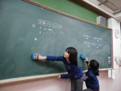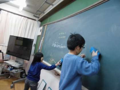 自分で、気づいて、黒板をきれいにしています。自分の当番としてやるべきことも自分からどんどん進めています。