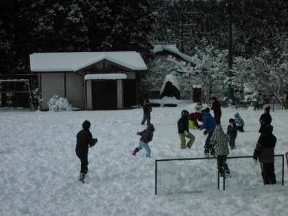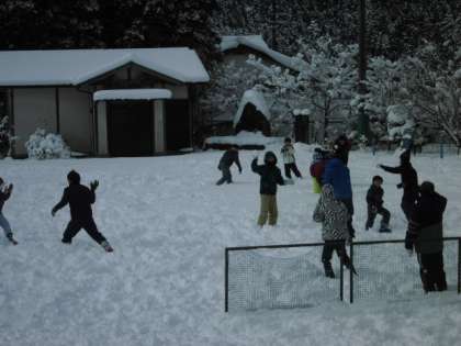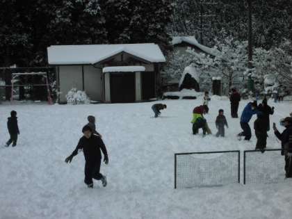 休み時間は、お待ちかねの雪遊びです。雪もそれほど降っていないので楽しく遊べています。