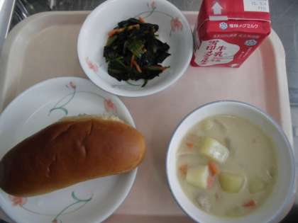 黒糖コッペパン 牛乳 豆乳のクリームシチュー ほうれん草のソテー