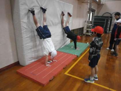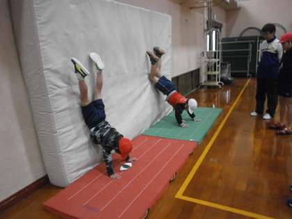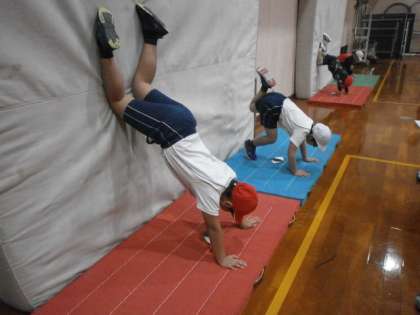 マット運動 壁倒立に挑戦