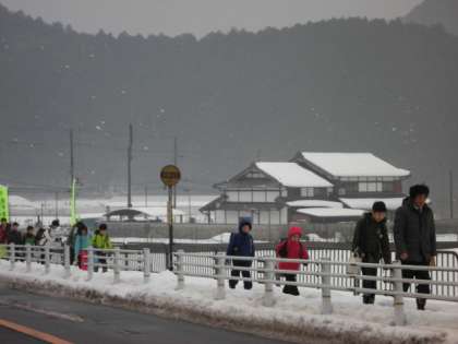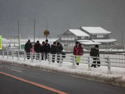 生き方チャレンジの中学生3名も最終日となりました。雪の残る歩道を元気に登校しています。