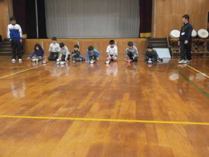 22日日曜日に,京都工学院高校にて,トイコンテストが行われます。「走る車」を自分たちで作り,速さ等を競い合います。今週,3・4年生の図工でそれぞれが自分の車を作りました。何度も体育館で走らせ,もっと速くもっと長くいけるように,ゴムを改良したり,車体を軽くしてみたりとそれぞれに工夫をしていました。どんな結果になるか,楽しみです。
