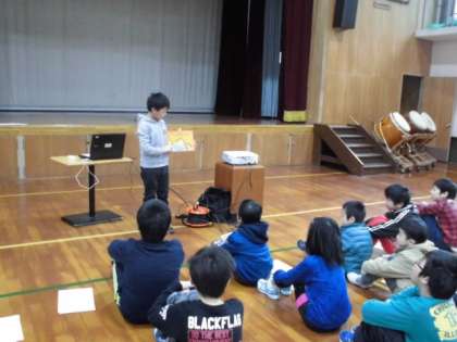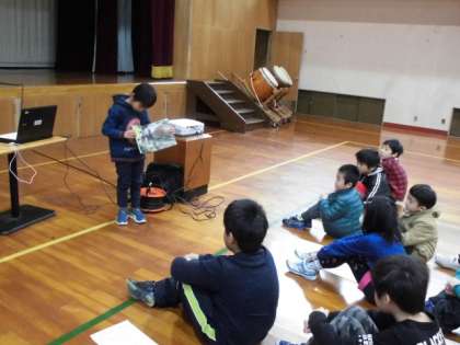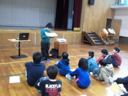 読書100冊の表彰の後、本の紹介をしました。3年生は、全員が100冊突破しました。この日の紹介の本は分類でいくと「4」で理科の関係の本が多かったです。