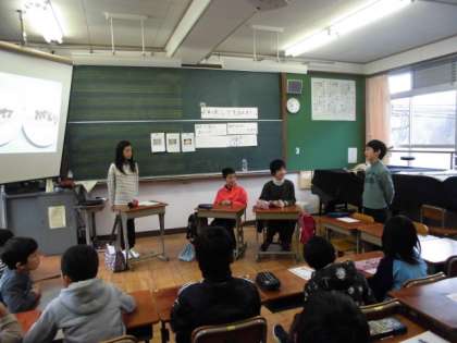 5年生の発表は、自分たちが家でチャレンジした献立についての説明です。全校の児童は作ることの楽しさやおいしさについて感じ取りました。食べ物や作ること片付けることを含めて自分でできるようになることに対する関心が高まりました。