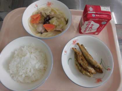減量ごはん 牛乳 わかさぎのこはくあげ 豆乳鍋