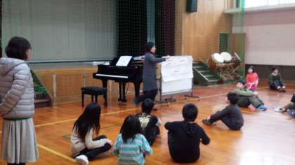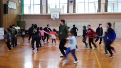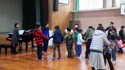 全校音楽でフレーズを意識して、歌ったり、リズムをとったりする学習をしました。普段は大変少ない人数で音楽を学んでいるので、大人数で考えたり、リズムを体で表現したりすることはとても楽しく、素敵な笑顔があちらこちらで見られました。子どもたちは「楽しかった!」と口々に話しながら体育館を出ていきました。とても寒い体育館にポット春が芽生えたようでした。