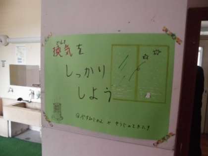 インフルエンザ予防のためにすることを教えていただいています。日頃からやっていることですが、この日はできていないことに気づくと早速、換気のために窓を開けていました。自覚的実行です。