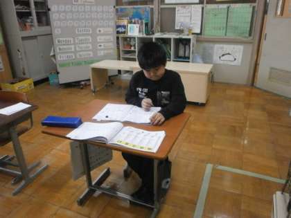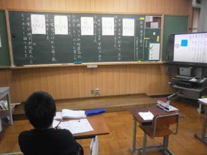 今日の1時間目の国語の時間に,「新出漢字を使って文章を考えよう」という学習を行いました。昨年度から週に1時間ずつ行っている学習です。4年生になってからは,その日の「めあて」を自分で考えるようにしています。今日のめあては「1時間で5文字分文章を考える」ことでした。ていねいな字を書く。主語・述語・修飾語を正しく使う。等,いろいろなめあてがありますが,めあてを決めることでより意識をもって学習にのぞむことができます。5文字分考えるというめあてを持つことで,しっかりと文章を考えられていました。「書くことが得意になってきました。」ということも言っていました。同じ学習を続けることで,より成長を感じることもできました。
