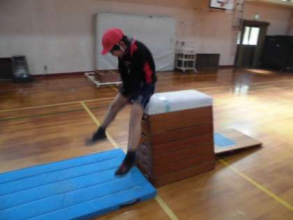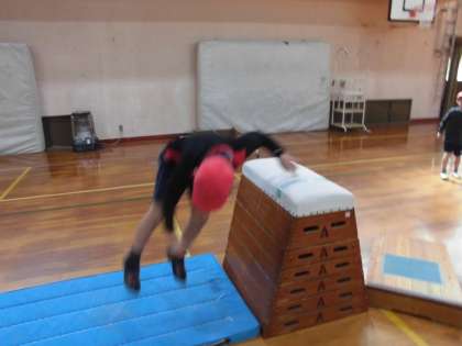 「横とびこし」「たて開脚とび」「横開脚とび」「とび上がり」で6段に挑戦しました。高さの違う段に積極的に取り組み,跳ぶことができました。跳べた時の笑顔がとても印象的でした。