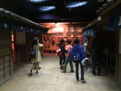石を引く体験をしたり、昔の街並みを見たりしました。