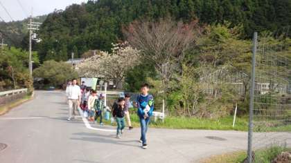 毎月月初めに声掛け運動を行っています。集団登校の集合場所で保護者や地域の方が子どもたちを見送ってくださいます。教職員は集団登校場所から、子どもとともに歩いたり、校門で出迎えてあいさつしたりします。元気な「おはようございます」がさわやかな5月の空に響いていました。