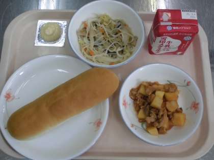 コッペパン 牛乳 豚肉のケチャップ煮 たっぷり野菜のビーフン チーズ