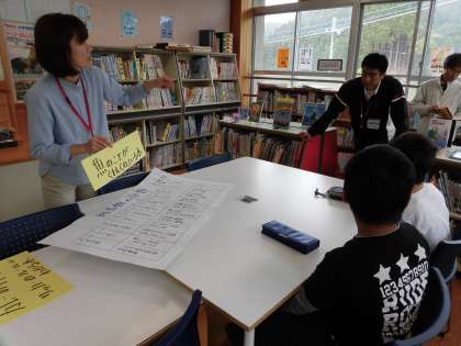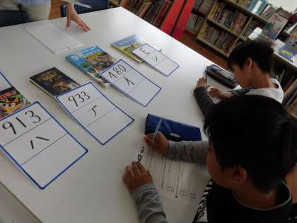 学校司書の先生による特別授業がありました。本の分類に関するお話や本探し,クイズなど楽しくためになる活動でした。これで,もう図書館博士になれたはず??