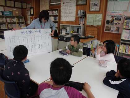 今日は,学校司書の先生に図書館での本の探し方を教えていただきました。