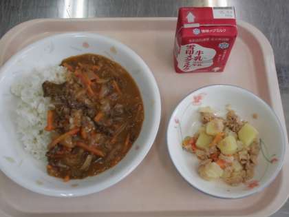 麦ごはん 牛乳 ハッシュドビーフ さっぱりツナポテト