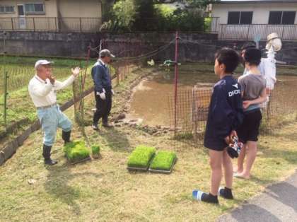 みんなが待ちに待った田植えをしました。すき間なく丁寧に行うことで収穫できる量も変わってきます。しっかりと見ながら手際よく作業できました。地域の方からも「上手にできてる」と言っていただけました。明日からは観察と水の調節を頑張っていきましょう。