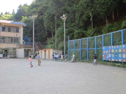 1年生が一輪車をしている6年生に,『ここまでおいで?』という感じで,追いかけてもらっていました。微笑ましいですね。