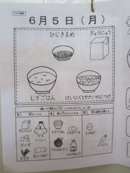 給食カレンダーに【赤の食べ物】の解説がされていました。