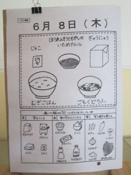 今日の給食は,麦ごはん・牛乳・五目豆腐・ほうれん草ともやしのいためナムル・じゃこです。