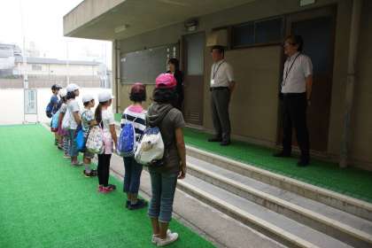 京都府庁の南側にある,元滋野中学校に到着しました。