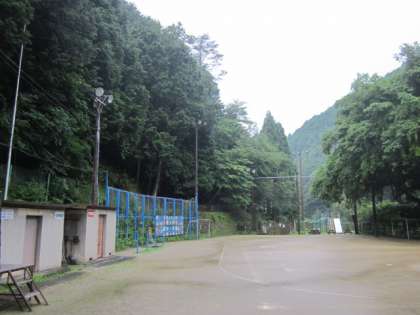 運動場はたっぷり水を含んでします。