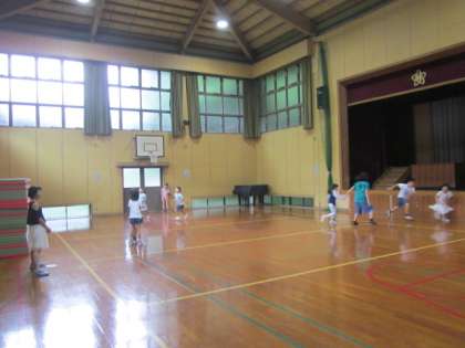 運動場と違って,体育館での『手つなぎ鬼』は,割とすぐにつかまります。
