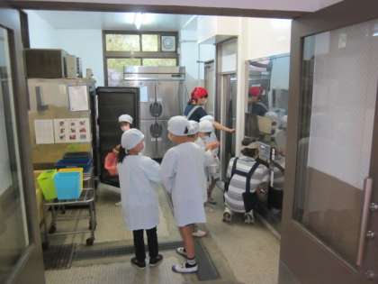 給食室から,何とも言えない良い香りが…。食欲が出ますね。
