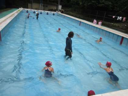 夏季プールでは,安全規定により,録画をしています。