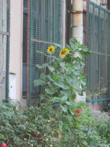 ひまわりの花が二つになりました。(仲良く咲いていますね。)