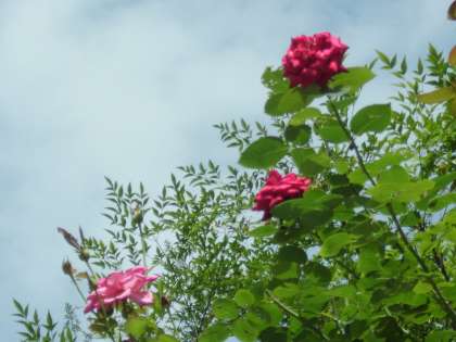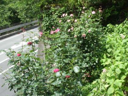バラ園ではバラが美しく咲いています。道路からも見えています。すぐ近くで紫陽花がまだ咲いています。随分大きく生長してきています。