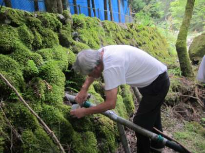 教頭先生と事務職員さんで,プールのポンプの応急修理をしています。