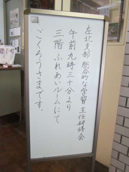 金曜日からは授業再開です。それまでの間は,授業準備や教職員作業・研修などが続きます。本校では,【総合的な学習】についての研修会が行われています。