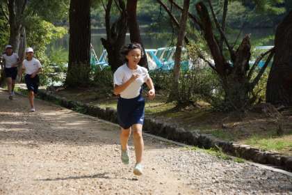 4小学校の6年生・5年生共々,宝ヶ池1周の1500メートルタイムトライアルもしました。