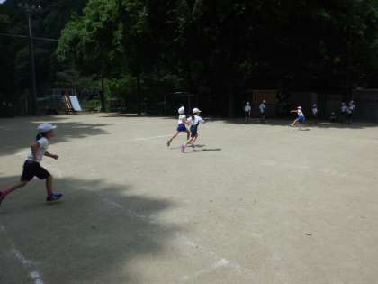 縄跳びの後は競走です。走るのも随分速くなりましたね。
