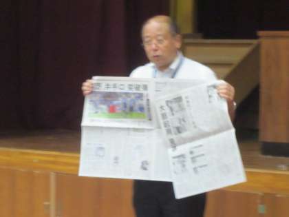 昨日のサッカーワールドカップ,関東大震災,尾木直樹先生(尾木ママ)のお話をしました。