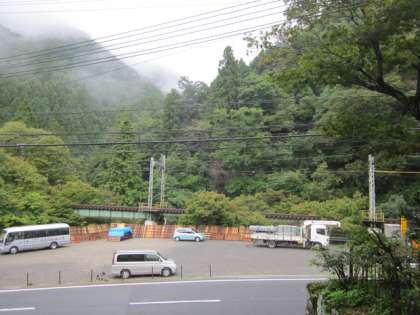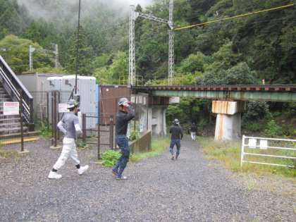 10月いっぱいの予定で,『叡電の橋脚塗装工事』が行われます。まず足場を組まれるそうです。