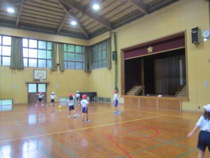 体育館の屋根に,雨音がバチバチ当たっています。雨音に負けないくらい元気にドッジボールができましたか?